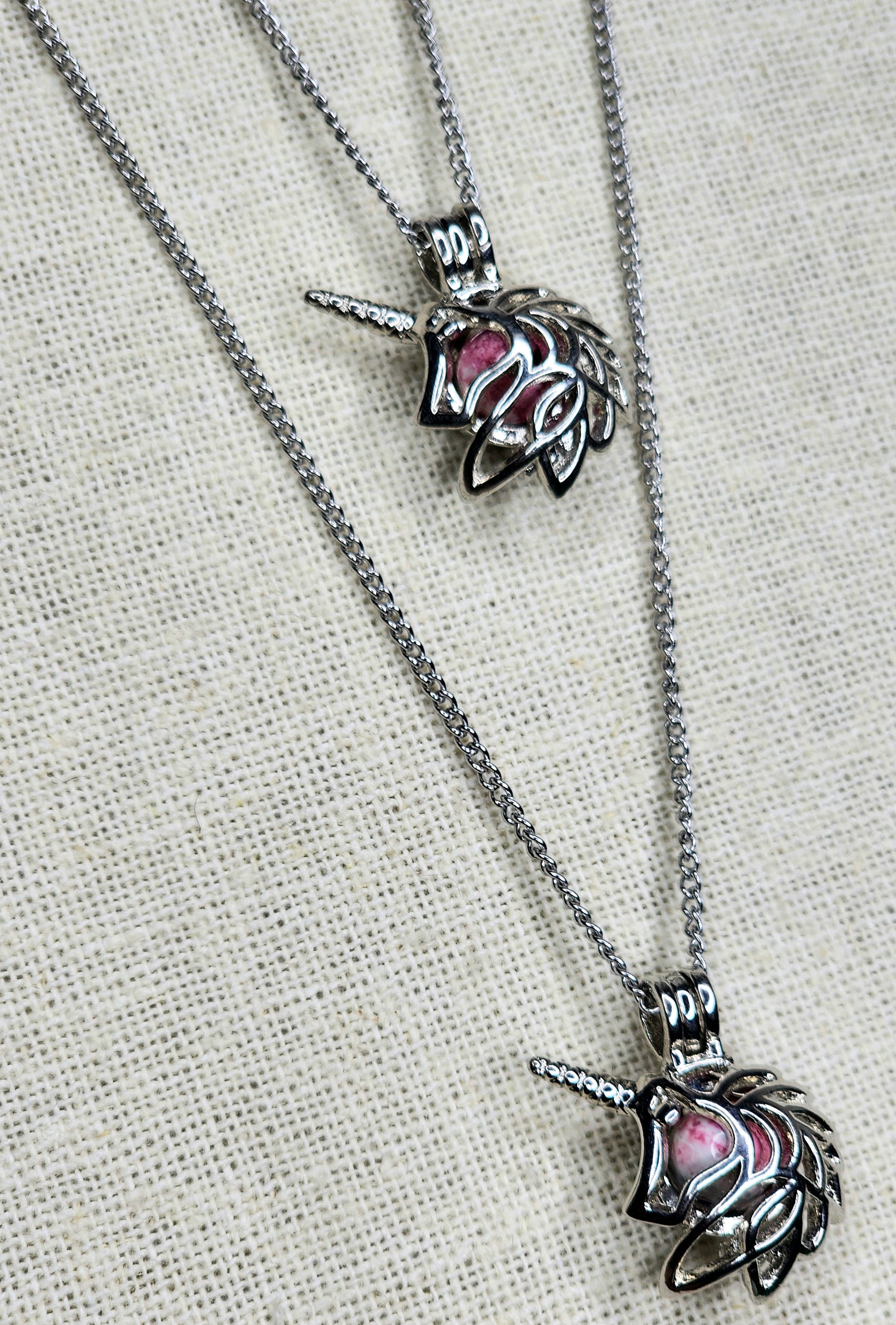 Pink Plum Jasper Unicorn Necklaces